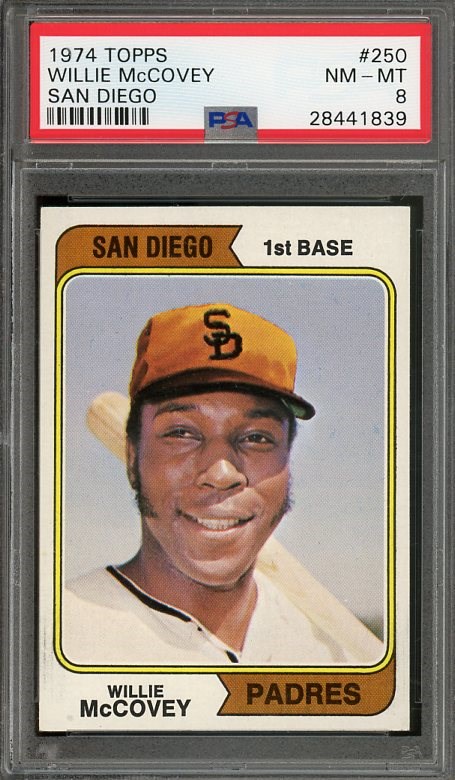 1974 Topps Willie McCovey #250  PSA NM/MT 8 - Here is a high grade 1974 McCovey in NM/MT 8 PSA grade. Card comes in a scratch free PSA holder.