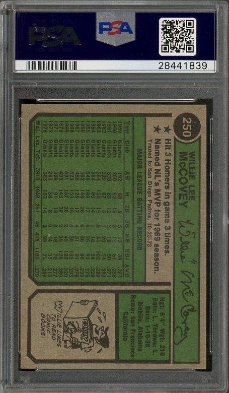 Lot # 319: 1974 Topps Willie McCovey #250 PSA NM/MT 8