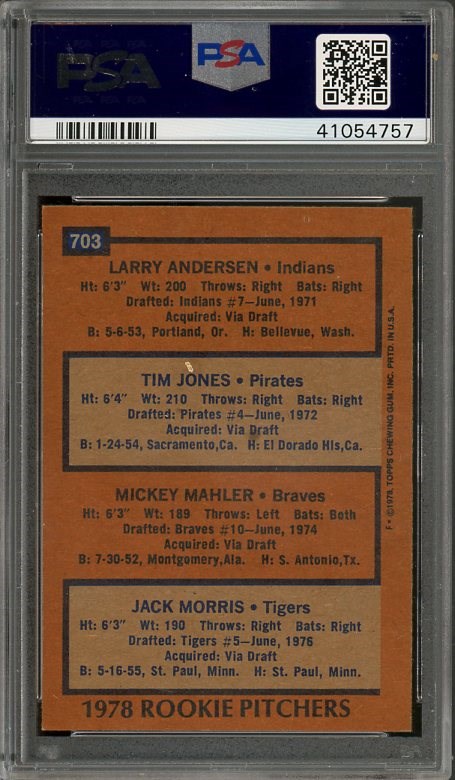 1978 Topps Jack Morris RC #708 PSA NM/MT 8 - Morris is a three time World Series champion, including MVP honors in 1991.