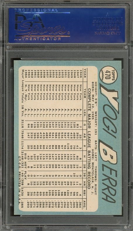 Lot # 198: 1965 Topps Yogi Berra #470 PSA NM/MT 8