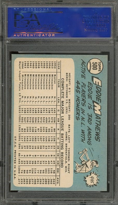 1965 Topps Ed Mathews #500 PSA NM/MT 8 - A high end card with no visible flaws. Card and holder are problem free.