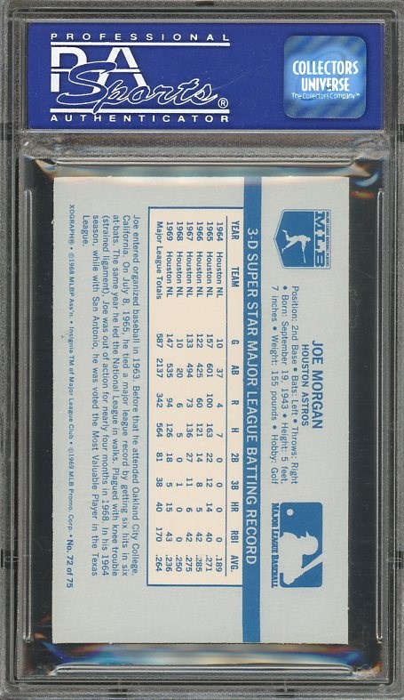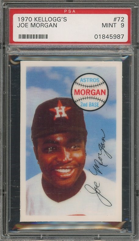 1970 Kellogg's Joe Morgan #72  PSA MINT 9 - This would be the first full scale Kellogg's issue, and fueled the  success of Kellogg's cards throughout the 1970's.  This Morgan is mint and centered.