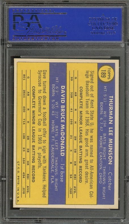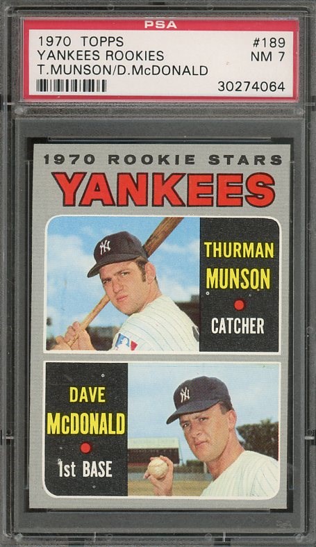 1970 Topps Thurman Munson RC #189  PSA NM 7 - Munson is the key rookie card in the 1970 Topps set.  A high end PSA 7, this card has exceptional corners and strong color.