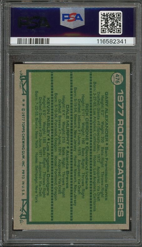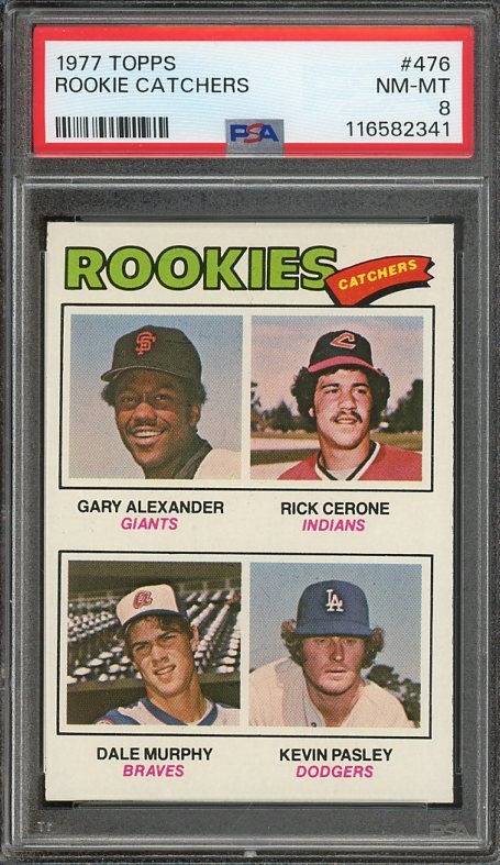 1977 Topps Dale Murphy RC #476 PSA NM/MT 8 - The Murphy rookie has had very strong momentum in the last six months, even passing the other big 1977 RC, Andre Dawson in prices realized.