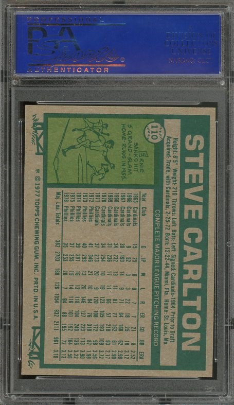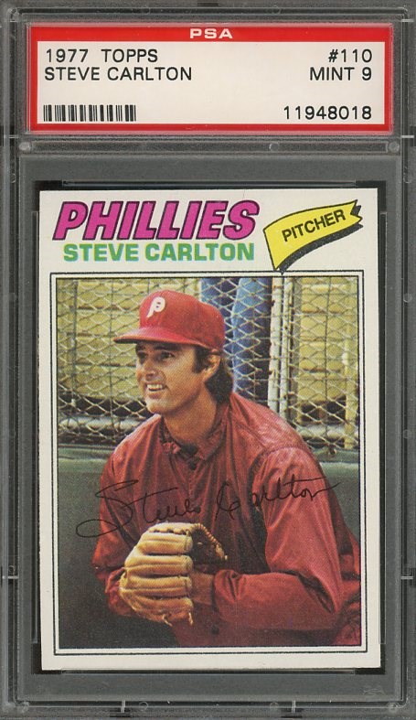 1977 Topps Steve Carlton #110 PSA MINT 9 - Mint and centered, cards don't get much better than this one.