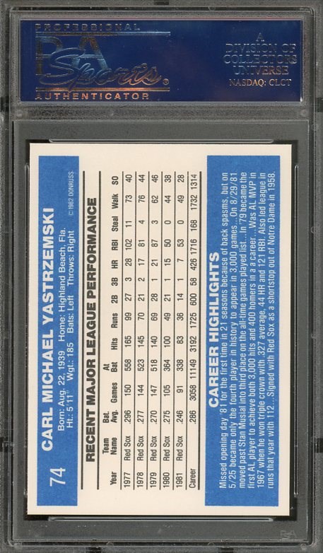 1982 Donruss Carl Yastrzemski #74 PSA GEM MINT 10