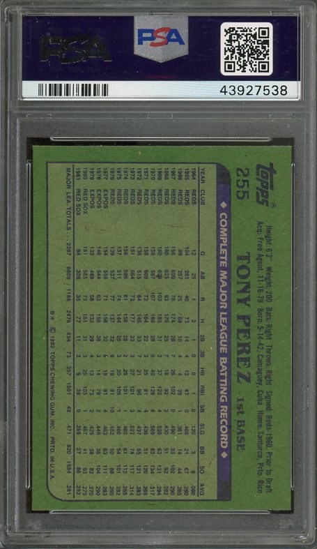 1982 Topps Tony Perez #255  PSA Gem Mint 10