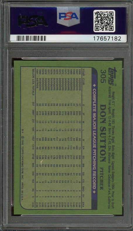 1982 Topps Don Sutton #305 PSA GEM MINT 10