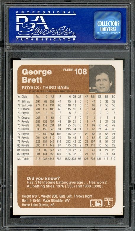 Lot # 399: 1983 Fleer George Brett #108 PSA GEM MINT 10