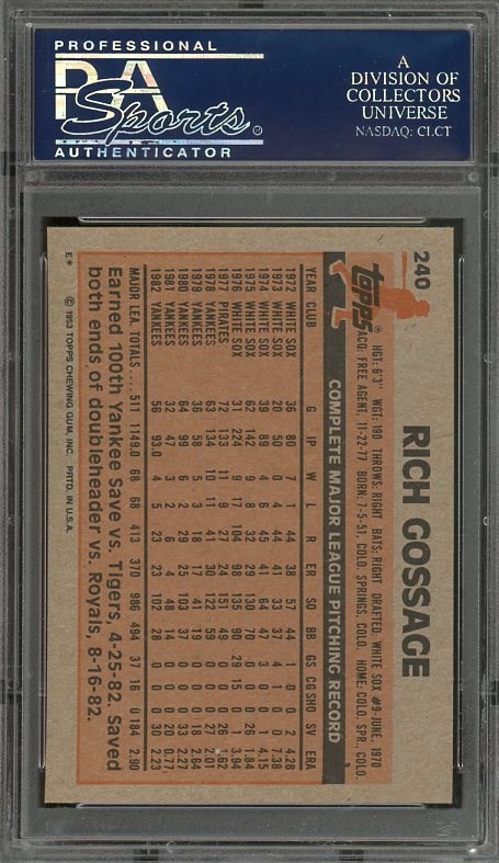 1983 Topps Rich Gossage #240 PSA GEM MINT 10