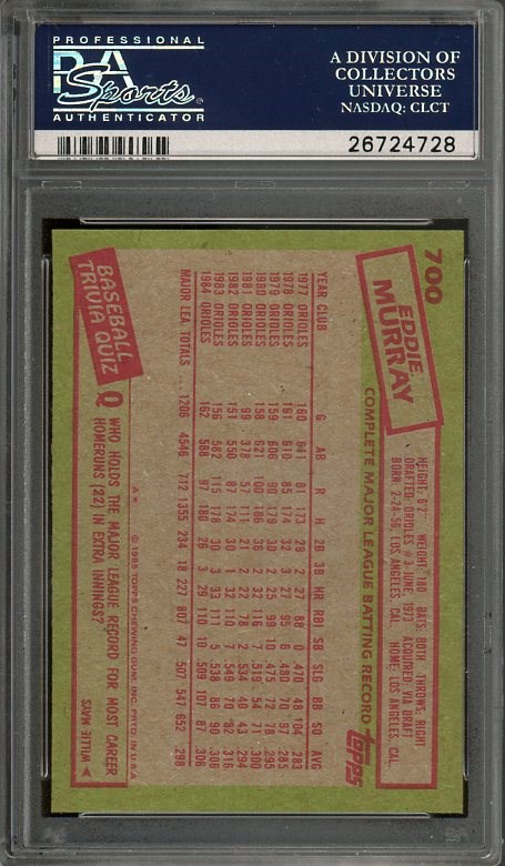 1985 Topps Eddie Murray #700  PSA GEM MINT 10