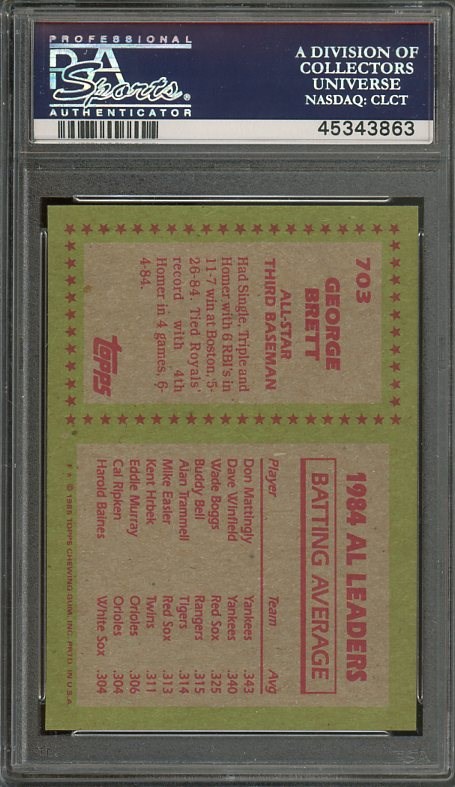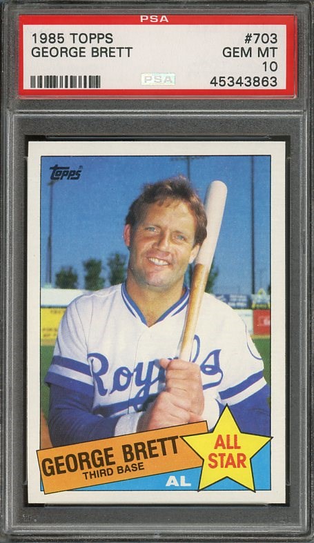 1985 Topps George Brett All-Star #703 PSA GEM MINT 10 - Here is a card that you do not often see in a PSA 10 grade. Grab this one before it is gone!