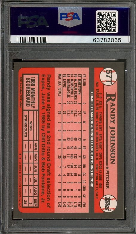 1989 Topps Traded Randy Johnson RC #57T  PSA GEM MINT 10 - A Gem Mint 10 of Hall of Famer Randy Johnson.  Card and holder are problem free.