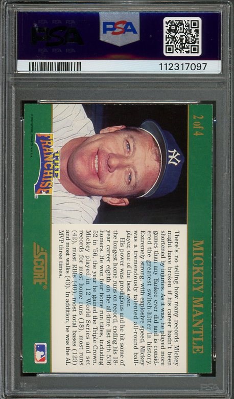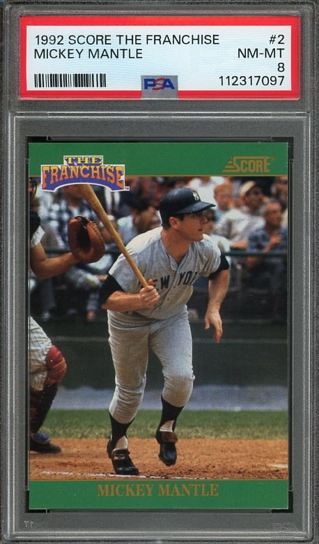 1992 Score The Franchise Mickey Mantle #2 PSA NM/MT 8 - You had to open a lot of packs back in the day to find this Mantle card. Here is a NM/MT 8 starting at just $15.