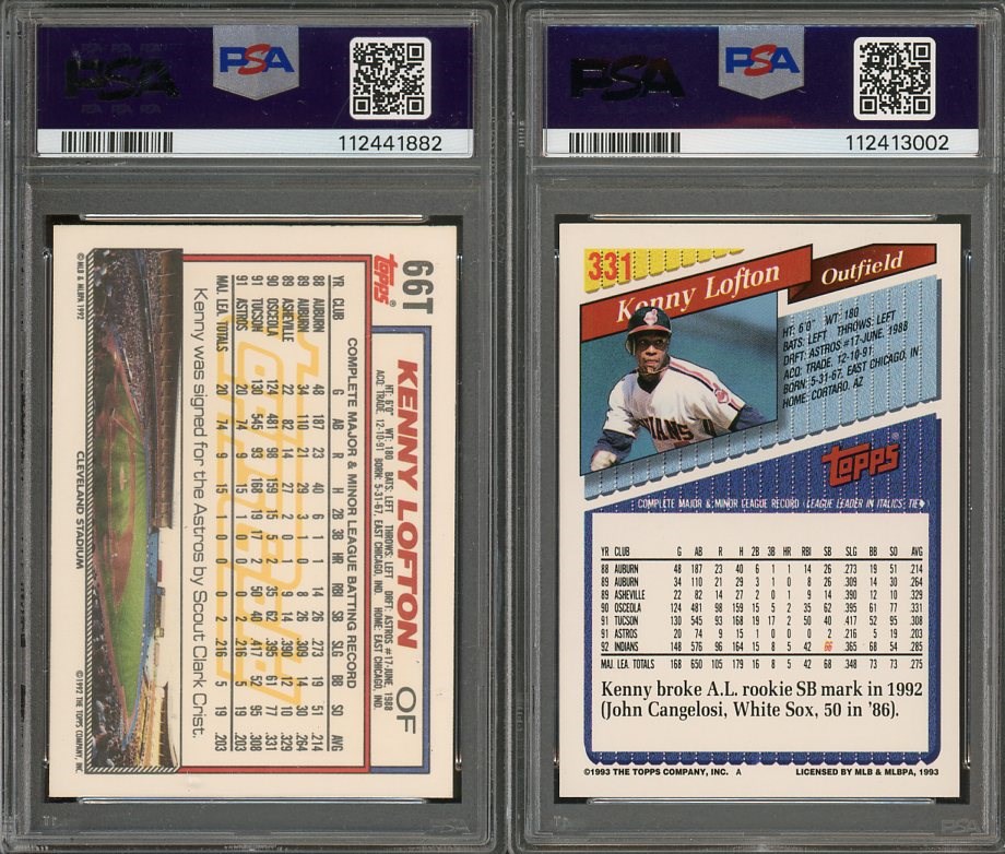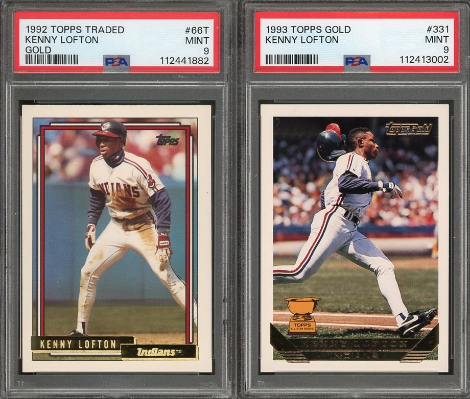 1992 Topps Gold #66T and 1993 Topps Gold #331 Kenny Lofton Both are PSA MINT 9's - Both cards are the Topps Gold parallel versions, and both are graded by PSA as Mint 9's.