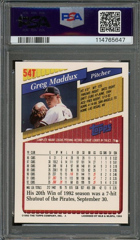 1993 Topps Traded Greg Maddux #54T PSA GEM MINT 10