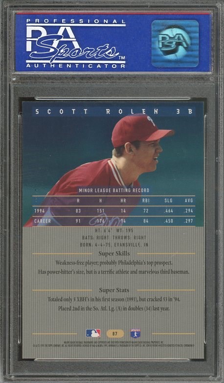 1995 Bowman's Best Scott Rolen RC #87 PSA MINT 9 - Rolen was elected to the Hall of Fame in 2023. This is Rolen's best rookie card and is graded Mint 9 by PSA.
