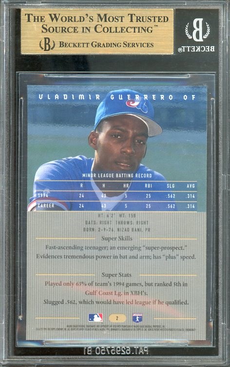 1995 Bowman's Best Vladimir Guerrero RC #2  BGS Gem Mint 9.5 - Great sub-grades! This is Guerrero's best rookie card and graded Gem Mint 9.5 by Beckett.