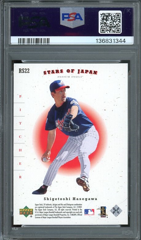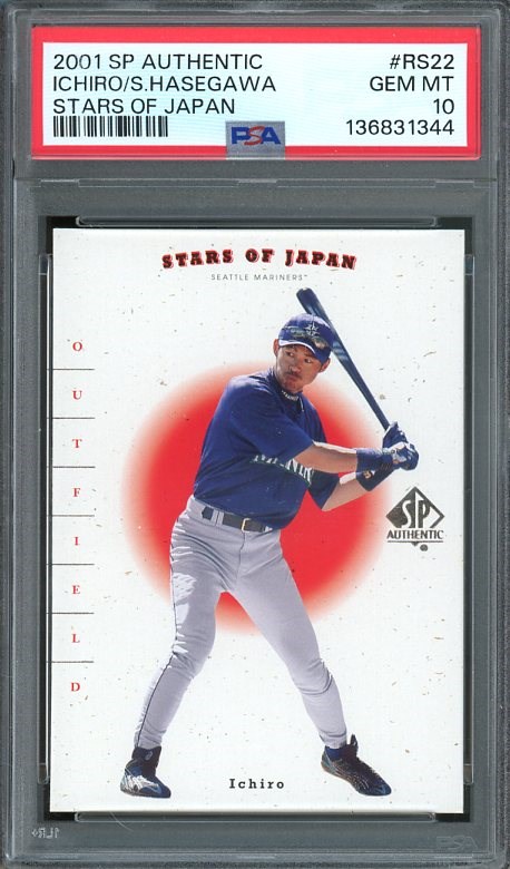 2001 SP Authentic Ichiro Suzuki/Hasegawa Stars of Japan #RS22 PSA GEM MINT 10 - This is an under appreciated Ichiro from the tough 2001 SP Authentic product. This card offers a lot of value for the price.