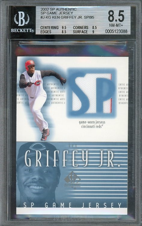 2002 SP Authentic SP Game Jerseys Ken Griffey, Jr. #J-KG  BGS NM/MT+ 8.5 - Card features a home white, game used swatch from Griffey, jr and is graded NM/MT+ 8.5 by Beckett.