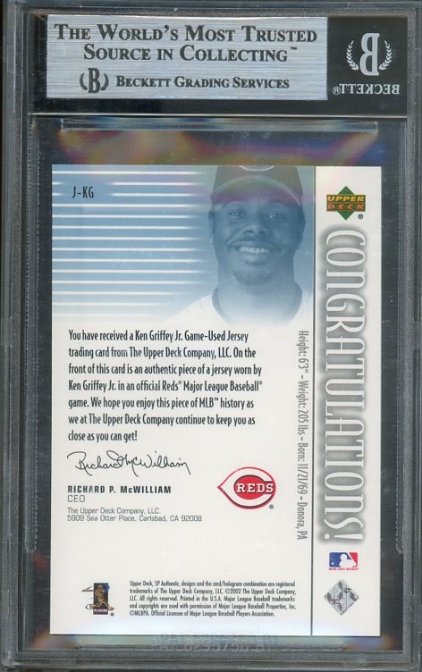 Lot # 512: 2002 SP Authentic SP Game Jerseys Ken Griffey, Jr. #J-KG BGS NM/MT+ 8.5