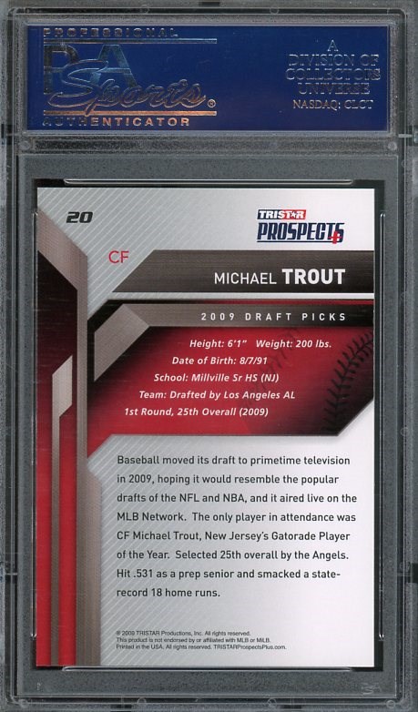 Lot # 533: 2009 Tristar Mike Trout Prospects Plus RC #20 PSA GEM MINT 10
