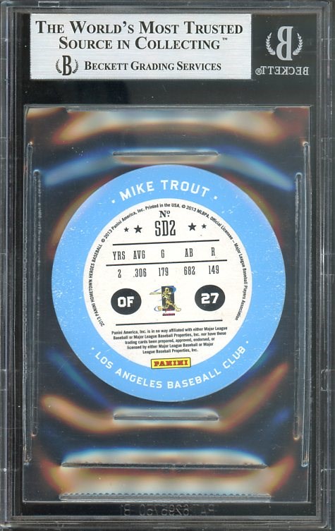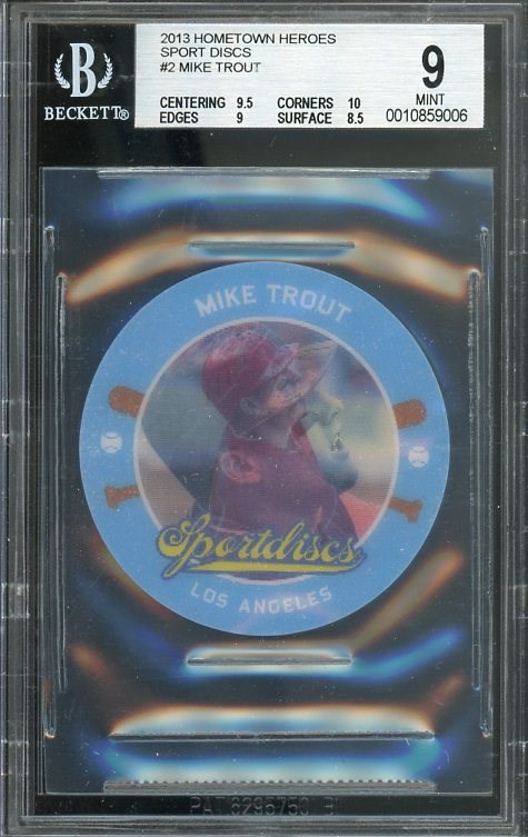 2013 Hometown Heroes Sports Discs Mike Trout #2 BGS Mint 9 - If you are a die-hard Trout collector, this lot is for you. Here is a tough Trout issue to find and is graded Mint 9 by BGS.