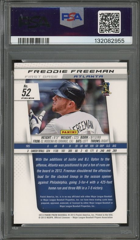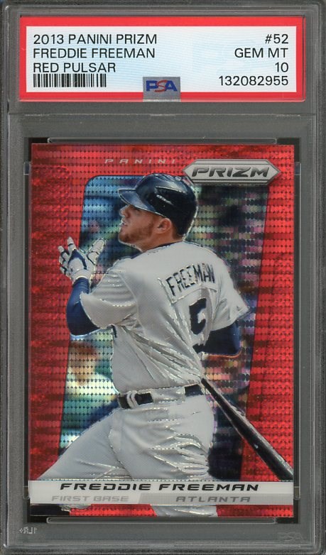 2013 Panini Prizm Freddie Freeman Red Pulsar Prizm #52 PSA GEM MINT 10 (Pop 2) - An early issue of Freeman, this Red Pulsar Prizm is a rarity with just two receiving a PSA 10 grade.