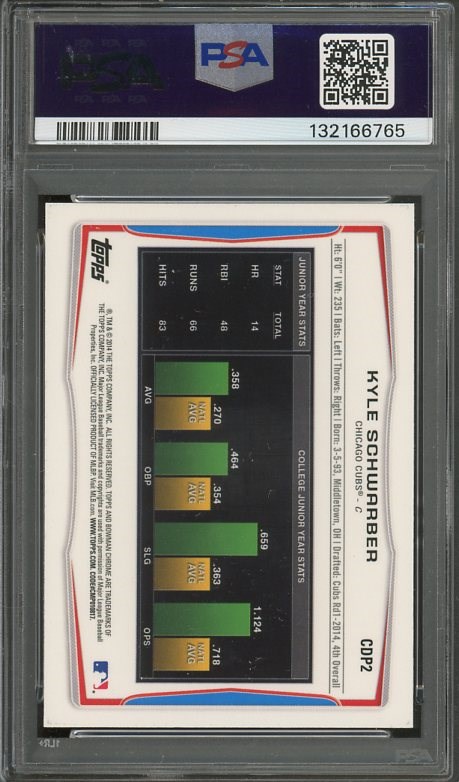 2014 Bowman Chrome Draft Picks Kyle Schwarber RC #CDP2  PSA GEM MINT 10 - This card has really taken off in the last year.  If Schwarber can be as productive again in 2026, this card will be on fire!