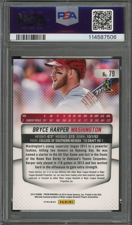 2014 Panini Prizm Bryce Harper Camo Prizm #79 PSA GEM MINT 10 (Pop 7)