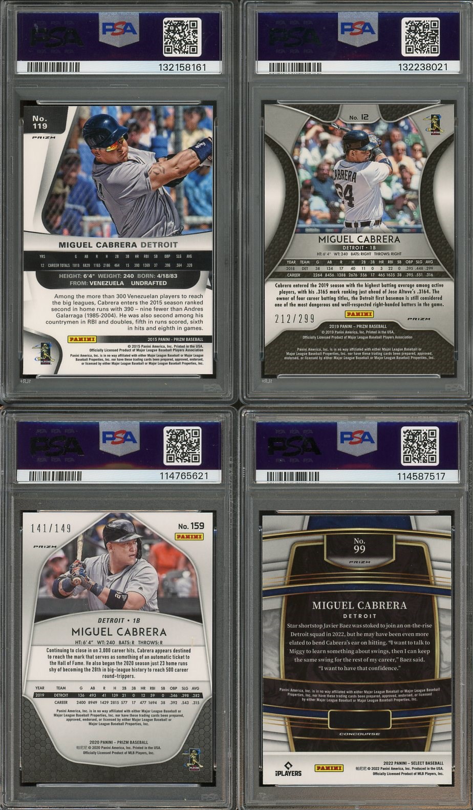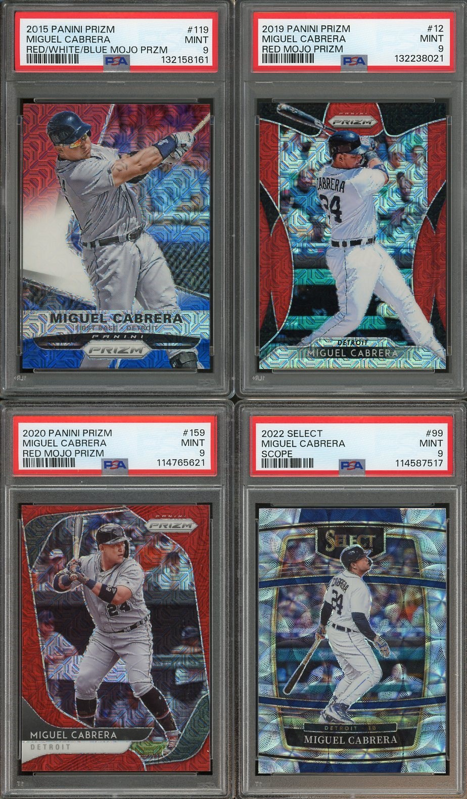 Miguel Cabrera Lot of 4 Panini Prizm Parallels all are PSA MINT 9's - Here is a great chance to add several Cabrera's to your collection. This lot starts at just $10 per card!
