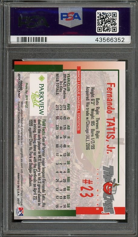 2017 Grandstand Fort Wayne Tincaps Fernando Tatis, Jr.  PSA GEM MINT 10