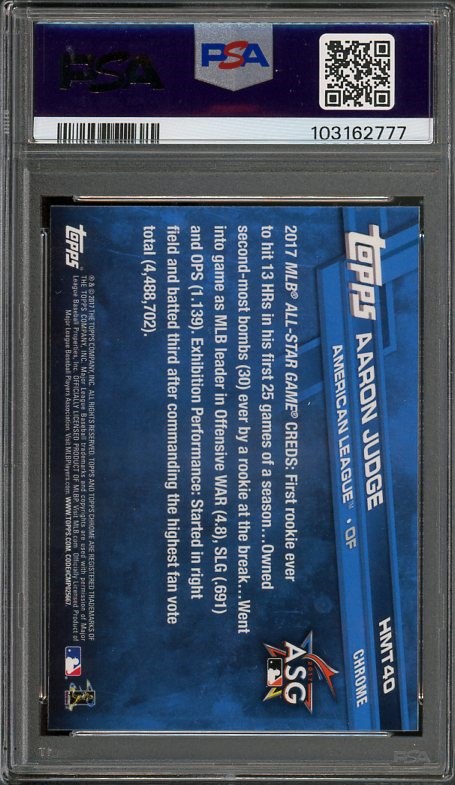 2017 Topps Chrome Update Aaron Judge RC #HMT40  PSA GEM MINT 10 - From the Update set.  A great looking card with no issues.  Card comes in a scratch free PSA holder.