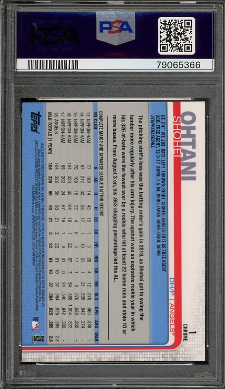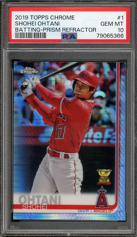 2019 Topps Chrome Shohei Ohtani Prism Refractor (Batting) #1 PSA GEM MINT 10 - Card features the Topps Rookie Cup Award and is the Prism Refractor parallel version of Ohtani's 2019 Topps Chrome card.