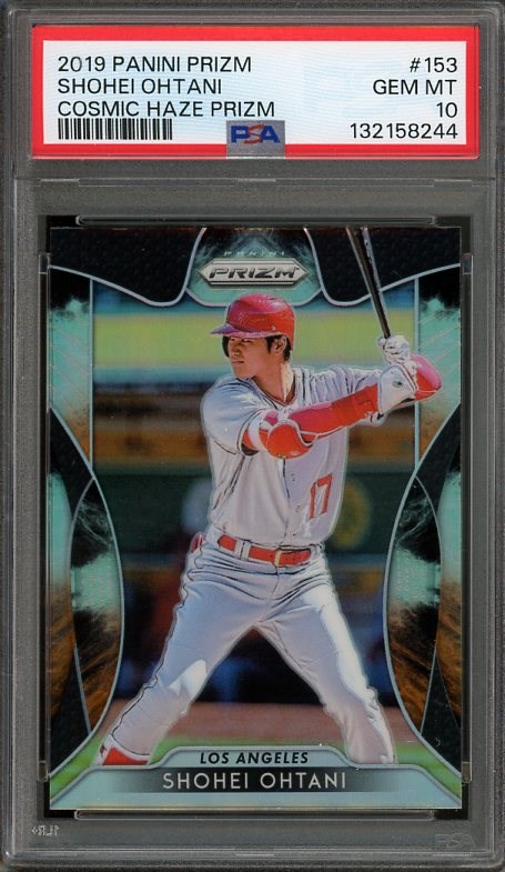 2019 Panini Prizm Shohei Ohtani Cosmic Haze Prizm #153 PSA GEM MINT 10 (Pop 7) - A highly desired card, this "Cosmic Hase" Prizm from Ohtani's second year is a beautiful card. Don't miss out on your chance to own it!