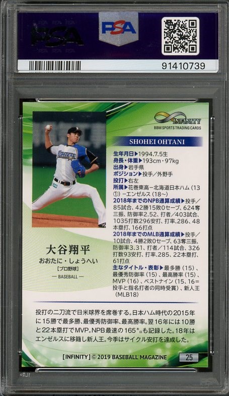 2019 BBM Infinity Shohei Ohtani #25  PSA GEM MINT 10 - This BBM card is a tough one, especially in PSA 10 grade.  Grab this one before it is too late!