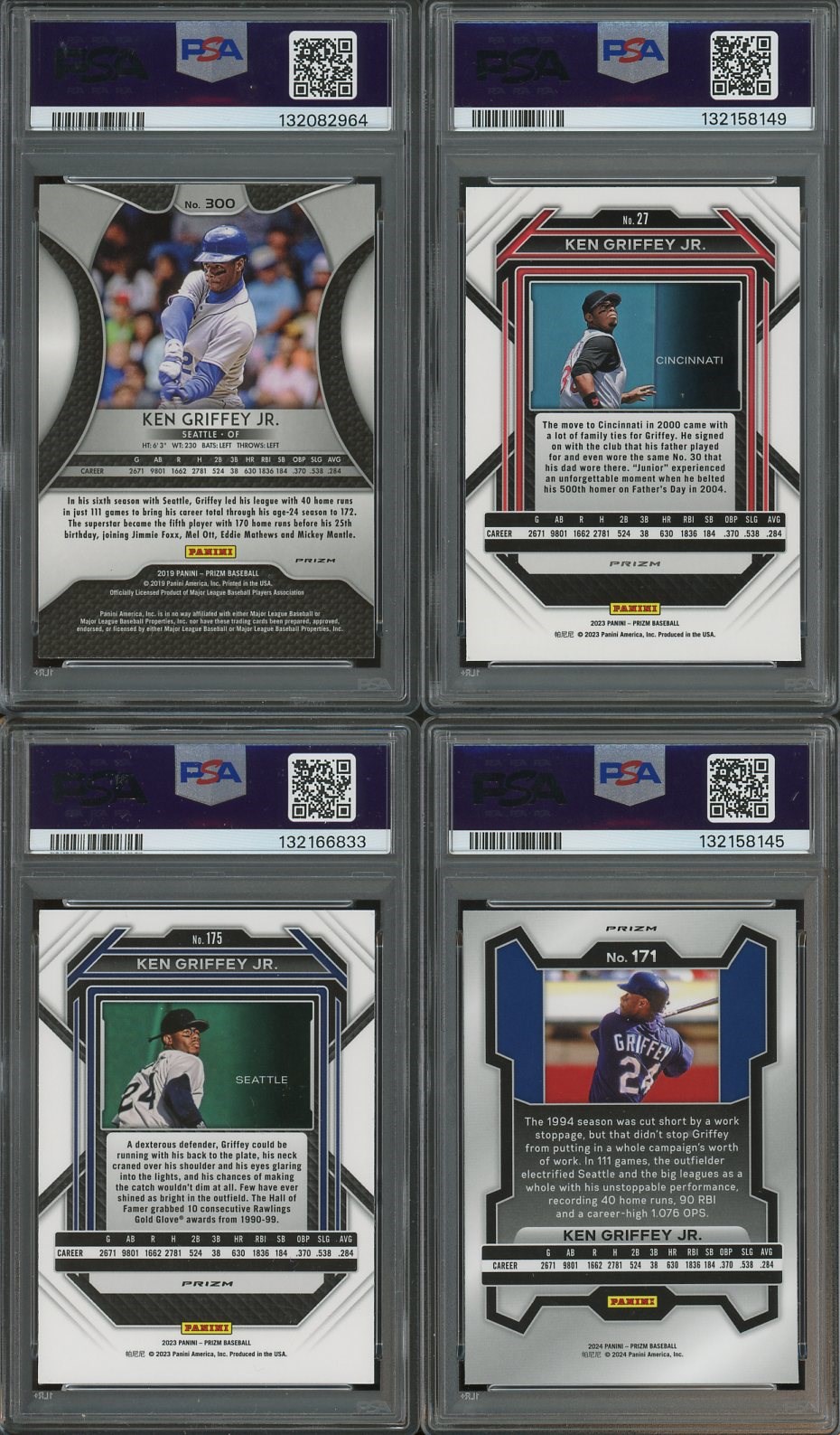 Lot # 610: Ken Griffey, Jr. Lot of 4 Prizm Parallels (2019-2024) All PSA MINT 9's