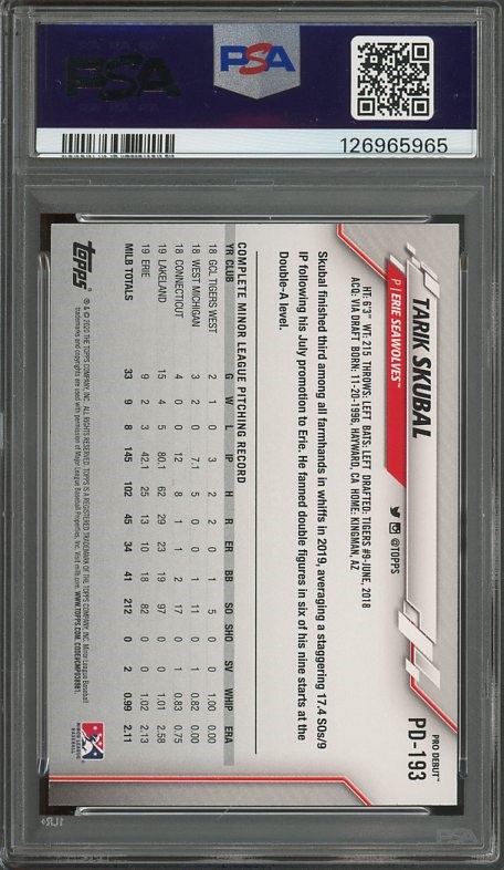 2020 Topps Pro Debut Tarik Skubal RC #PD193 PSA GEM MINT 10 - A condition sensitive card, this Tarik Skubal debut card is a gem! Don't miss out.
