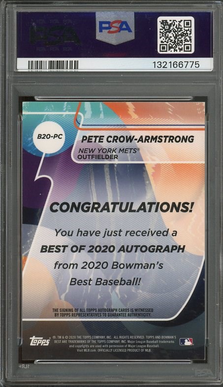 2020 Bowman's Best Pete Crow-Armstrong Best of 2020 Autographs RC  PSA MINT 9 - Crow-Armstrong really emerged as a star player during the 2025 season. Here is an autograph rookie of his from 2020 Bowman's Best.