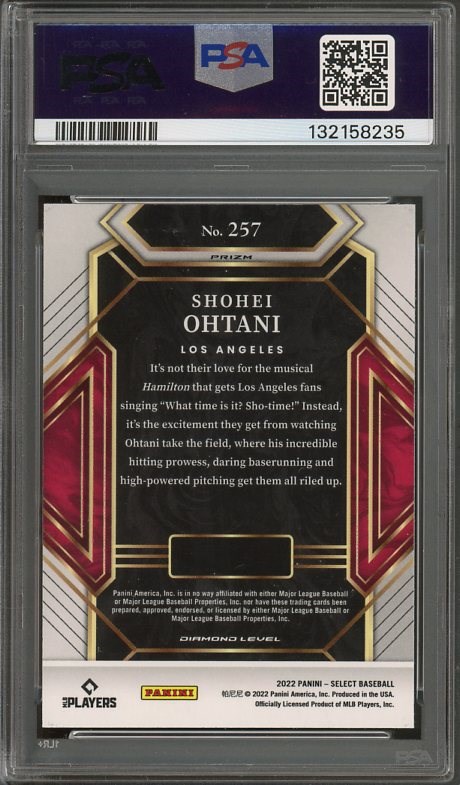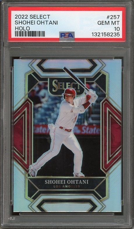 2022 Panini Select Shohei Ohtani Holo Prizm #257 PSA GEM MINT 10 - This is a highly attractive Holo Prizm parallel and was given a Gem Mint 10 grade by PSA. A very nice item!