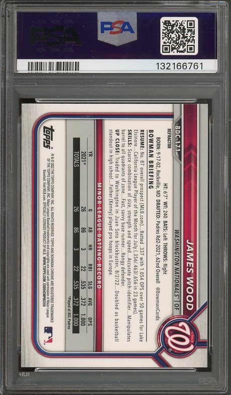2022 Bowman Draft James Wood Chrome Refractor RC #BDC171 PSA GEM MINT 10
