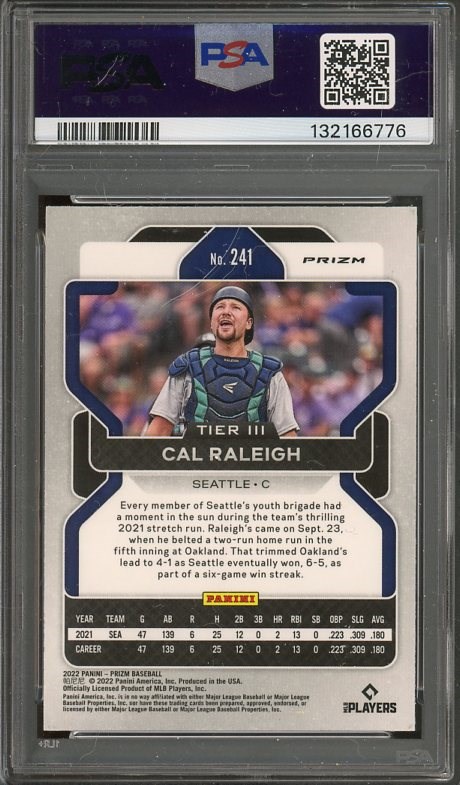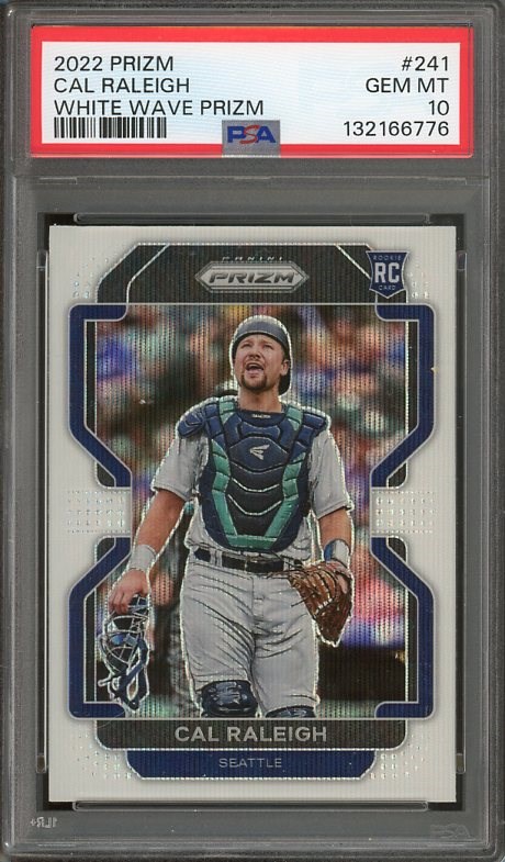 2022 Panini Prizm Cal Raleigh White Wave Prizm RC #241 PSA 10 (Pop 2) - Here is a super high quality rookie card of Cal Raleigh. PSA 10 pop is only two, so don't miss out!