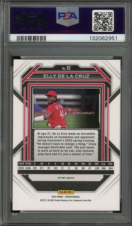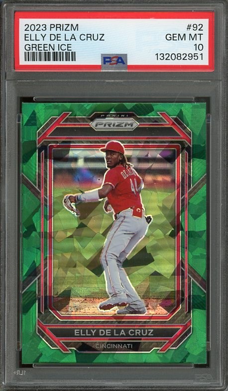 2023 Panini Prizm Elly De La Cruz Green Ice Prizm RC #92 PSA GEM MINT 10 (Pop 25)