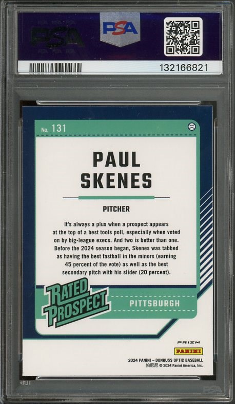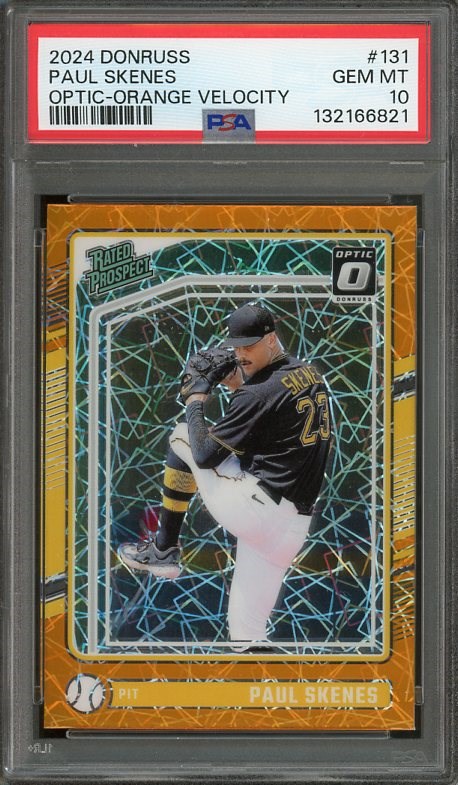 2024 Panini Donruss Paul Skenes Optic Orange Velocity RC #131 PSA GEM MINT 10 - This is one of the better Skenes cards offered in this auction. A tough parallel rookie and in PSA Gem Mint 10 grade!