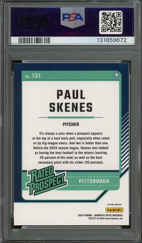 2024 Panini Donruss Paul Skenes Optic Blue Velocity RC #131 PSA GEM MINT 10