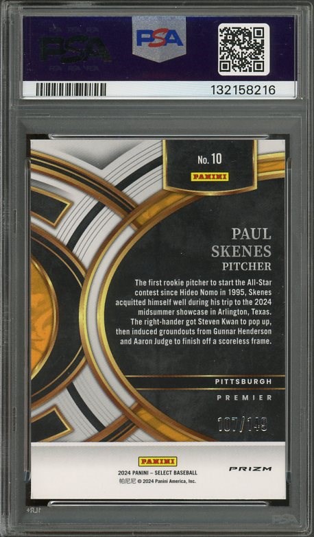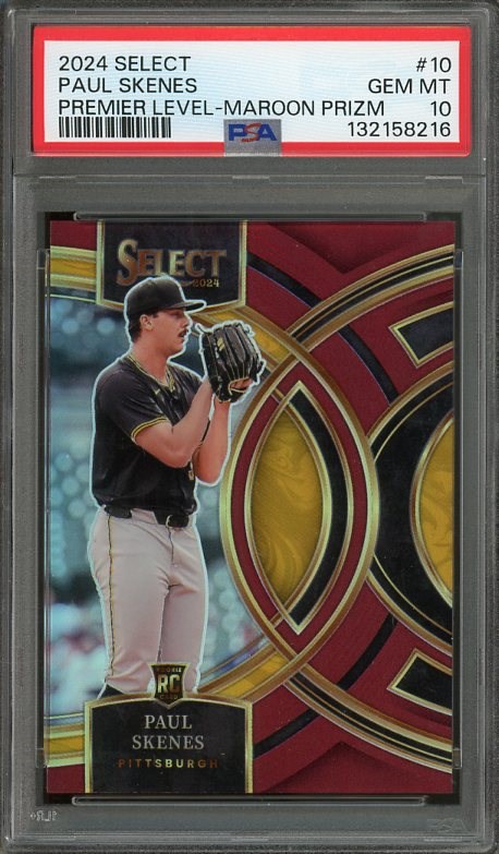 2024 Panini Select Paul Skenes Premier Level Maroon Prizm RC #10 (#'d/149) PSA 10 (Pop 16) - With a print run of just 149 made, this Skenes rookie should be on your radar!