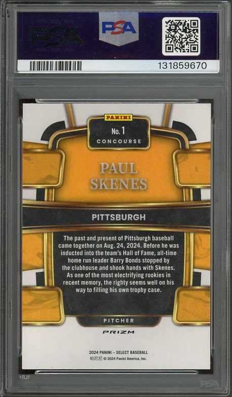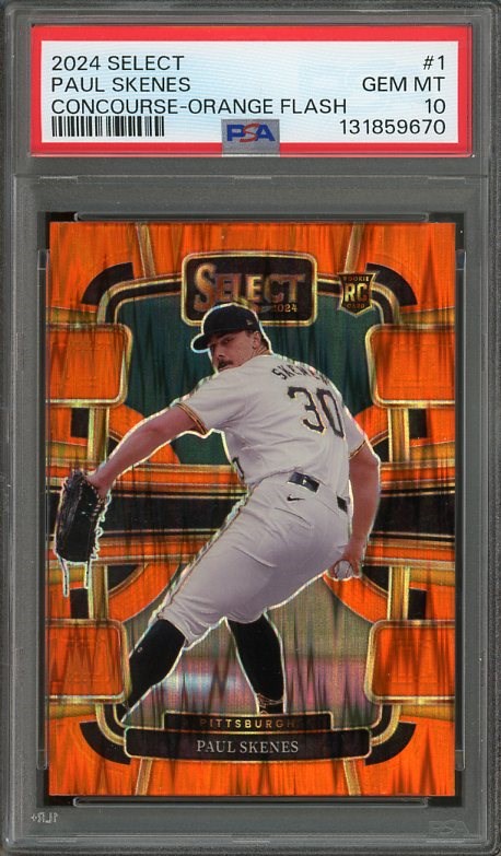 2024 Panini Select Paul Skenes Concourse Orange Flash RC #1 PSA 10 (Pop 11)