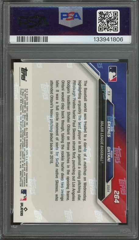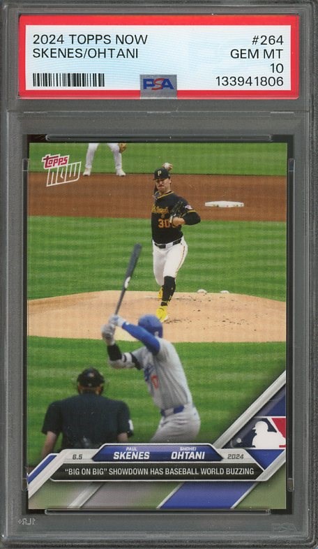 2024 Topps Now Paul Skenes/Shohei Ohtani #264 PSA GEM MINT 10 - Quickly becoming a classic card, this super popular Skenes/Ohtani Topps Now, captured the two hottest players in baseball. A must have card!