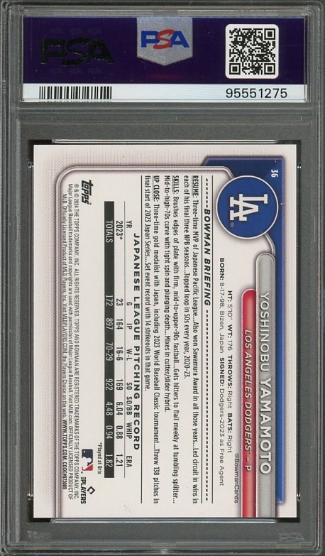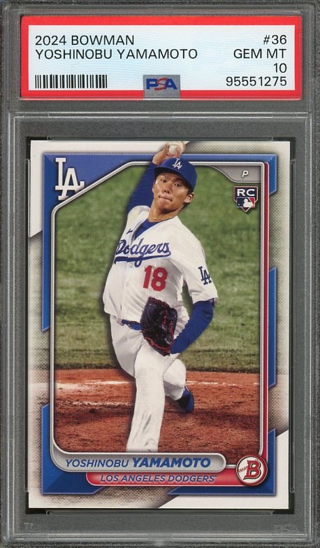 2024 Bowman Yoshinobu Yamamoto RC #36 PSA GEM MINT 10 - Yamamoto played a pivotal role in helping the Dodgers win the 2025 World Series. Here is his Bowman RC in PSA 10.