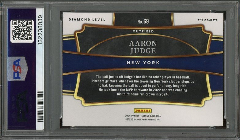 2024 Panini Select Aaron Judge Diamond Level Orange Flash #69 PSA 10 (Pop 1) - The Diamond Level cards from Select are very tough, with this Orange Flash Prizm of Aaron Judge being the only one in PSA 10 grade!
